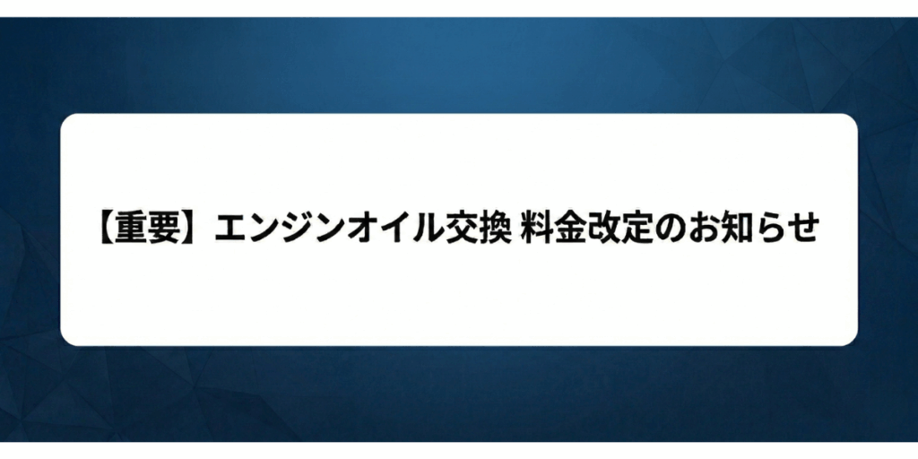 平素より株式会社ファミリーをご愛顧いただき、ありがとうございます。 誠に心苦しいお知らせではございますが、このたび令和8年7月1日より、オイル交換の料金を改定させていただきます。 弊社では、原材料価格の高騰に対し、現行価格の維持に努めてまいり…
